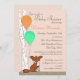 Invitación a la ducha de bebé de zorro de Woodland con abedules y globos naranjas y verdes.
