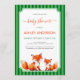 Invitación Fox Mama and Baby Shower Green Stripes Cute