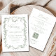 Haga una declaración atemporal con esto Invitación a la boda de All In One French Victorian Sage Green QR Code. Este elegante diseño combina con gusto el romanticismo de antaño con la comodidad moderna. El código QR incorporado hace que el seguimiento de RSVP sea sencillo, mientras que el diseño todo en uno incluye la sección de direcciones de invitación, detalles y devolución en un pliego elegante. Ideal para bodas vintage, románticas o de jardín con una estética refinada.