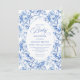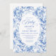 Invitación French Toile de Jouy Blue Roses Baby Shower Invite