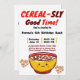 Haz que el cumpleaños de tu pequeño sea un tazón lleno de diversión con esta invitación de fiesta de cereal colorida y juguetona.