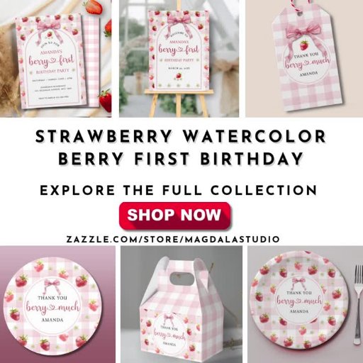 Strawberry Watercolor Berry First BirthdayDiseñado por Magdaline Annie Martin Oming
