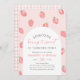 Invite a amigos y familiares a celebrar el cumpleaños de su pequeña con esta invitación con tema de fresas acuáticas.
