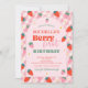 Invitación Fresa Berry Primer cumpleaños Gingham