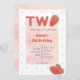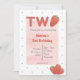 Invitación de cumpleaños con tema de fresa. Letra brillante con fresas. Detalle de lunares dulces en el reverso. Rojo y rosa. Perfecto para el segundo cumpleaños de bebé o niño pequeño, Edita fácilmente texto moderno y divertido. Se ajusta al tema de fiesta tutti fruity / twotii fruity o tema berry sweet. Encuentra accesorios coincidentes en la tienda Gemma Harlow Creations o transfiere el diseño a tus productos favoritos.