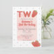 Invitación de cumpleaños con tema de fresa. Letra Two brillante con fresas. Detalle dulce de lunares. Acuarela roja y rosa. Perfecto para el segundo cumpleaños de bebé o niño pequeño. Edita fácilmente el texto moderno y divertido. Se ajusta al tema de fiesta tutti fruity / twotii fruity o tema berry sweet. Encuentra accesorios a juego en la tienda de Gemma Harlow Creations o transfiere el diseño a tus productos favoritos.