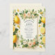 Elegante diseño de invitación con limones vibrantes y flores delicadas, mezcla de frescura y romanticismo para su día especial