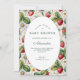 A sweet and timeless baby shower design featuring a soft cream center framed by a lush strawberry vine pattern. This botanical cottage-garden style combines gentle greenery, delicate berries, and a warm vintage tone for an inviting, storybook feel. Perfect for spring or summer celebrations, this design adds natural charm and a fresh, feminine touch to your baby shower. All details can be personalized to match your event.