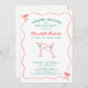 Frontera ondulada de cumpleaños 21 con invitación de fiesta de arcos... Nuestra invitación para la fiesta de cumpleaños "21 años en el planeta Tierra" incluye un guión colorido y una tipografía sans serif encima y debajo de las gafas martini tocando el honor, todo dentro de un marco ondulado de arte de línea de moda adornado con bonitos arcos rojos La parte trasera de la tarjeta muestra los lentes de martini tostado por un guión exuberante que dice "¡Salud a 21 años!". Todo el texto de ejemplo se puede revisar fácilmente en la plantilla de personalización.