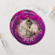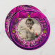 Elegante corona con flores de fruta, arte fino del Renacimiento clásico, vibrante, obra maestra de Bottega della Robbia ( Florencia - Italia ). Elegante plantilla de fotografía redonda/circular con forma de foto invitación en oro amarillo, negro, morado, rosa, fucsia, colores violeta con brillantes piedras de topacio 3D amarillo. Diseño artístico y fresco, fácil de personalizar con el texto