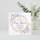 Este diseño presenta peonías y follaje en un estilo de dibujo moderno y minimalista que recuerda a la tela floral. Los círculos con delineado dorado acentúan el texto correspondiente con serios clásicos y una tipografía cursiva manuscrita. "Baby Shower" se exhibe en el centro. La parte trasera de la invitación a la ducha de novia tiene los detalles del registro. También hay mucho espacio en la parte posterior para añadir detalles o texto adicional.