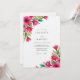 This design features a lively display of vibrant fuchsia blossoms and lush green foliage. The artistic floral arrangement evokes a whimsical and enchanting mood, perfect for a romantic occasion. The color palette is dominated by bold pinks and rich greens.