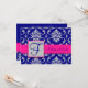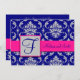 Invitación Fucsia Azul Marino Plateado Damask Save the Date 1