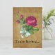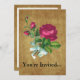 Color de rosa magenta fucsia rosado oscuro del vintage elegante y elegante con una cinta azul clara contra un fondo de papel envejecido. ¡Un regalo bonito y nostálgico para el día de madre, abuela o en cualquier ocasión!