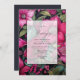 Invitación Fucsia Glamuroso, Verde Esmeralda y Floral Negro