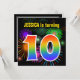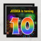 Esta diversión, características del diseño vibrantes de la invitación de la fiesta de cumpleaños un modelo colorido inspirado estallando los fuegos artificiales celebradores, junto con el número "10" teniendo un arco iris multicolor inspiró espectro o el modelo de la pendiente. El nombre en el frente puede ser modificado para requisitos particulares. Las características traseras personalizaron los detalles sobre el fiesta. Las invitaciones de la fiesta de cumpleaños como esto se pudieron enviar a las huéspedes potenciales para una fiesta de cumpleaños que era sostenida para celebrar alguien décimo cumpleaños. [~Z0000337]