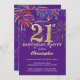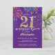 Invitación Fuegos artificiales de púrpura y oro en cumpleaños