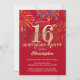 Invitación a los fuegos artificiales del arcoiris 16 de cumpleaños rojo y oro. Para una mayor personalización, haga clic en el botón "Personalizar" y utilice nuestra herramienta de diseño para modificar esta plantilla.