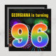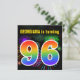 Este divertido y vibrante diseño de invitaciones para fiestas de cumpleaños presenta un colorido estallido de fuegos artificiales de celebración inspirado, junto con el número "96" que presenta un multicolor arcoiris como espectro o gradiente. El nombre del frente puede ser personalizado. En la parte posterior se incluyen detalles de personalizable sobre el fiesta. Las invitaciones para fiestas de cumpleaños como esta podrían enviarse a potenciales asistentes para una fiesta de cumpleaños que se lleva a cabo para celebrar el cumpleaños número noventa de alguien. [~Z0000337]