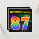 Este divertido y vibrante diseño de invitaciones para fiestas de cumpleaños presenta un colorido estallido de fuegos artificiales de celebración inspirado, junto con el número "87" que presenta un espectro multicolor inspirado en el arcoiris o un patrón de gradiente. El nombre del frente puede ser personalizado. La parte posterior contiene información personalizado sobre el fiesta. Las invitaciones para fiestas de cumpleaños como esta podrían ser usadas para invitar a los invitados a una fiesta de cumpleaños que se lleva a cabo para celebrar el ochenta y siete cumpleaños de alguien. [~Z0000337]