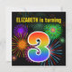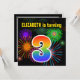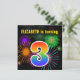 Este divertido y vibrante diseño de invitaciones para fiestas de cumpleaños presenta un colorido patrón inspirado en la explosión de fuegos artificiales de celebración, junto con el número "3" que tiene un espectro multicolor inspirado en el arcoiris o un patrón de gradiente. El nombre del frente puede ser personalizado. En la parte posterior se incluye información sobre el personalizable del fiesta. Las invitaciones para fiestas de cumpleaños como esta podrían enviarse a potenciales invitados para una fiesta de cumpleaños que se lleva a cabo para celebrar el tercer cumpleaños de alguien. [~Z0000337]