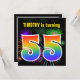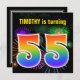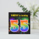 Este divertido y vibrante diseño de invitaciones para fiestas de cumpleaños presenta un colorido estallido de fuegos artificiales de celebración inspirado, junto con el número "55" que tiene un espectro multicolor inspirado en el arcoiris o un patrón de gradiente. El nombre del frente puede ser personalizado. En la parte posterior se incluyen detalles de personalizable sobre el fiesta. Se podrían enviar invitaciones de fiesta de cumpleaños como esta para invitar a los invitados a una fiesta de cumpleaños que se lleva a cabo para celebrar los cincuenta y cinco años de alguien. [~Z0000337]