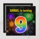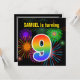 Este divertido y vibrante diseño de invitación para fiestas de cumpleaños presenta un colorido estallido de fuegos artificiales de celebración inspirado, junto con el número "9" que tiene un espectro multicolor inspirado en el arcoiris o un patrón de gradiente. El nombre en la parte delantera se puede personalizar. En la parte posterior se incluyen detalles de personalizable sobre el fiesta. Se podrían enviar invitaciones para fiestas de cumpleaños como esta para invitar a los invitados a una fiesta de cumpleaños que se lleva a cabo para celebrar el noveno cumpleaños de alguien. [~Z0000337]