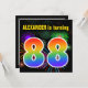 Este divertido y vibrante diseño de invitaciones para fiestas de cumpleaños presenta un colorido estallido de fuegos artificiales de celebración inspirado, junto con el número "88" que presenta un multicolor arcoiris como espectro o gradiente. El nombre del frente puede ser personalizado. En la parte posterior se incluyen detalles de personalizable sobre el fiesta. Las invitaciones para fiestas de cumpleaños como esta podrían enviarse a potenciales invitados para una fiesta de cumpleaños que se lleva a cabo para celebrar los ochenta y ocho años de alguien. [~Z0000337]