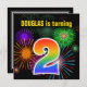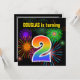 Este divertido y vibrante diseño de invitaciones para fiestas de cumpleaños presenta un colorido estallido de fuegos artificiales de celebración inspirado, junto con el número "2" que presenta un espectro multicolor inspirado en el arcoiris o un patrón de gradiente. El nombre del frente puede ser personalizado. En la parte posterior se incluyen detalles de personalizable sobre el fiesta. Se podrían enviar invitaciones para fiestas de cumpleaños como esta para invitar a los invitados a una fiesta de cumpleaños que se lleva a cabo para celebrar el segundo cumpleaños de alguien. [~Z0000337]