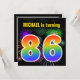 Este divertido y vibrante diseño de invitaciones para fiestas de cumpleaños presenta un colorido estallido de fuegos artificiales de celebración inspirado, junto con el número "86" que presenta un multicolor arcoiris como el espectro o el gradiente. El nombre en la parte delantera se puede personalizar. En la parte posterior se incluye información sobre el personalizable del fiesta. Las invitaciones para fiestas de cumpleaños como esta podrían ser usadas para invitar a los invitados a una fiesta de cumpleaños que se lleva a cabo para celebrar el 86º cumpleaños de alguien. [~Z0000337]