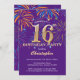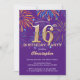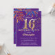 Invitación a los fuegos artificiales del arcoiris 16 de cumpleaños morado y oro. Para una mayor personalización, haga clic en el botón "Personalizar" y utilice nuestra herramienta de diseño para modificar esta plantilla.