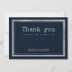 Máquina de escribir en azul marino y plateado con tipografía de fuente plateada estilo rústico boda Gracias invitaciones. Es perfecto para cualquier chica refinado y sofisticado o para cualquiera. Este diseño es ideal para un evento fiesta moderno y elegante. Personalizar este diseño con su mensaje e información personalizada. Todos los diseños están impresos.