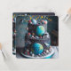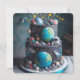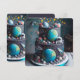 LA TARTA TEMÁTICA DEL ESPACIO DE DIVERSIÓN EN EL FRENTE ES GRANDE PARA LA INVITACIÓN DE LA FIESTA DE SU HIJO. EDITAR COPIA EN LA ESPALDA