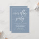 Hermosa caligrafía moderna, anuncio de boda fugaz, tarjeta de invitación (Fiesta de feliz para siempre). Esto es perfecto para la recepción de su boda y la fiesta de celebración posterior a la boda. Agregue sus datos en la fuente / letra coincidente. Tema azul polvoriento.
