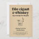 Cigarro y Whisky Gratis (a cambio de pañales). Una divertida invitación a una fiesta de pañales que pone en el centro de atención... ¡cigarros y whisky! La ilustración está dibujada a mano.