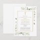 Una elegante invitación de recuerdo de celebración de la vida personalizada con acuarela botánica de hojas verdes. Diseñada por Thisisnotme©