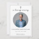 Abraza la preciada memoria de tu ser querido con nuestro solemne "Funeral Católico en la invitación de la foto de la memoria amorosa". Creado para devotos familias católicas, este tributo tiene una cruz simbólica, que encarna la fe y el recuerdo. La elegante inscripción "In Loving Memory" en caligrafía adorna el frente, junto con una querida foto oval, nombre, detalles de la esperanza de vida y un mensaje sincero, en homenaje al viaje de su vida. Al contrario, encontrará amplio espacio para detalles esenciales como el nombre del lugar, la dirección, la fecha y la hora. Además, hay espacio para un mensaje personalizado e información de RSVP, asegurando un toque reflexivo y personalizado para honrar la memoria de tu amado durante esta solemne ocasión. Esta invitación es un testimonio de la fe, el recuerdo y el homenaje a la vida vivida. Personalizable y diseñado para conmemorar a tu ser querido de una manera que refleje su espíritu y sus sentimientos más profundos.