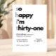 Celebrate turning 31 in style with this modern minimalist birthday invitation featuring bold typography and a clean, contemporary layout. The playful “so happy i’m thirty-one” design creates a fun yet sophisticated vibe—perfect for a stylish celebration.