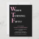 Invitación Funny 50 cumpleaños WTF negro y rosa cómico