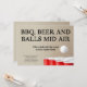 "barbacoa, cerveza y bolas a medio aire". Una divertida invitación a la barbacoa de un pong de cerveza para los audaces y bulliciosos. Perfecto para un fiesta de pañales para el futuro papá.