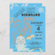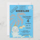 Tu pequeño querrá fiesta como un dinosaurio en su fiesta de cumpleaños. Invite a amigos y familiares con esta encantadora invitación que incluye lindos dinosaurios con un fondo azul festivo. Una palmera y un sol decoran esta invitación para una fiesta infantil donde puedes personalizar la información con el nombre de tu hijo, la dirección del fiesta y la fecha y hora de tus festividades.