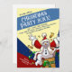 A funny snowman cartoon on a Christmas party invitation. Use "Personalize this template" to change the event details and create a unique, customized item. Santa Claus. Snowmen. Christmas gifts. It's all here in one design, with this excited snowman dressed up as Santa Claus, jumping like a jack-in-the-box out of a Christmas present.