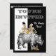 Graciosos esqueletos góticos de Steampunk bebiendo en un rinoceronte vintage, con un fondo clásico blanco y negro. Perfecto para Alternativa, victoriana, gótica, steampunk, ciclista, cumpleaños con temática de rock, soltero, graduación, fiestas. Personalice fácilmente todo el texto para hacer una invitación personalizada única para su evento. Visite la TIENDA LEATHER_AND_LACE para obtener productos que coincidan y más regalos y productos alternativos, bodas y fiestas.