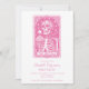Tarot inspired birthday invitation in vibrant pink, featuring a vintage skeleton holding a cupcake inside an ornate card frame with twinkling stars. The reverse shows a matching star pattern. It blends mystical charm with a playful goth vibe, perfect for witchy or celestial themed celebrations from sweet sixteen to milestone parties. Personalize the name, date, time, location, and RSVP. Available in print, as a digital download, or both!