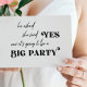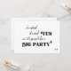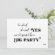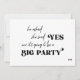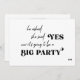 Simple black and white trendy bold typography wedding invitation with a funny "he asked she said yes - there it's going to be a big party" modern quote script.
