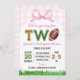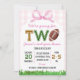 Celebra el gran día de tu pequeño vicepresidente con nuestra invitación al segundo cumpleaños de fútbol. Diseñado con un fondo de gingham rosa, acentos de arco dulce y detalles de fútbol lúdico, esta invitación es la combinación perfecta de deportistas y niñas. Personalice con el nombre, edad y detalles del fiesta de su hijo para marcar el tono de una divertida e memorable celebración de cumpleaños de fútbol rosa.