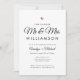 Esta fiesta mínima de compromiso invita a brillar por su simplicidad. Un guión hermoso con flores dice "El futuro, señor y señora" junto con sus detalles personales de celebración en la tipografía moderna. Encima se sienta un delicado corazón de oro falso rosa.