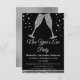 2022 Nochevieja Fiesta Invitación a la Fiesta de Gafas de Champán de Diamante Plateado. La invitación a la fiesta de Nochevieja de Oro y Negro es perfecta para un Fiesta moderno de Nochevieja.