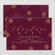 Invite a sus huéspedes a su evento especial con esta moderna invitación de Gala para Navidades. Este diseño presenta una tipografía elegante, copos de nieve y chispas de oro con un fondo rojo burdeos. Perfecto para eventos de vacaciones de invierno de empresa o fiesta de gala de recaudación de fondos. Hay más invitaciones y suministros de fiesta disponibles en mi tienda BaraBomDesign.