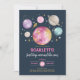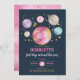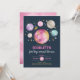 Celebra el hito especial de tu hijo con esta mágica invitación de cumpleaños temática en el espacio exterior. Con planetas imaginarios, luna y estrellas de color rosa, púrpura, menta y dorado.